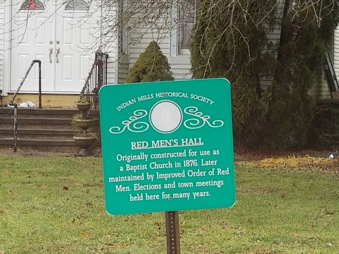 Apparently the church ran into financial difficulty early. By 1881, their Building & Loan mortgage of $1,400 was in default and services were no longer being held. In March 1892, James M. Armstrong of Indian Mills purchased the property at a sheriff sale. Tribe #168 Improved Order of Red Men was organized in Indian Mills in 1891and was already using the church for their meetings when Armstrong took possession. The first member, William Howard Weeks, a farmer of Indian Mills was recorded on June 25, 1891.