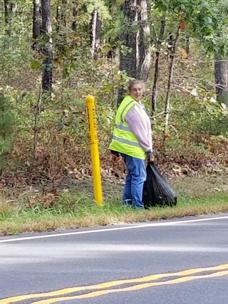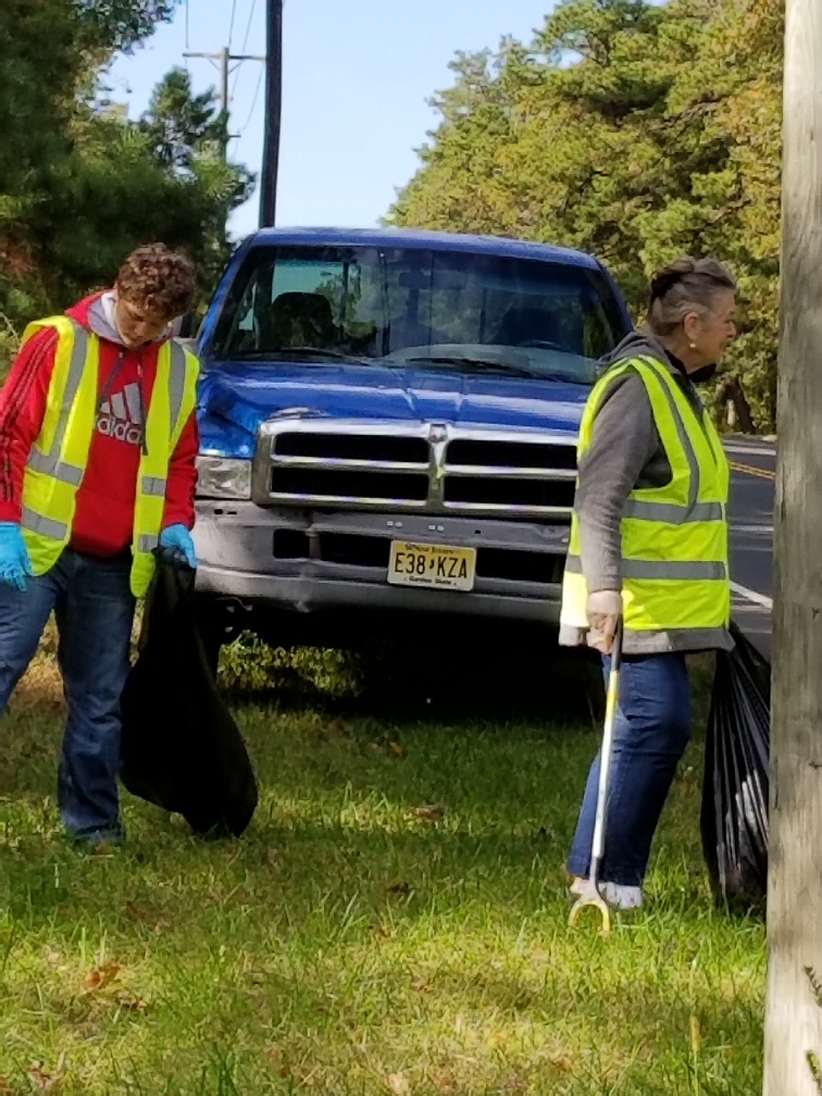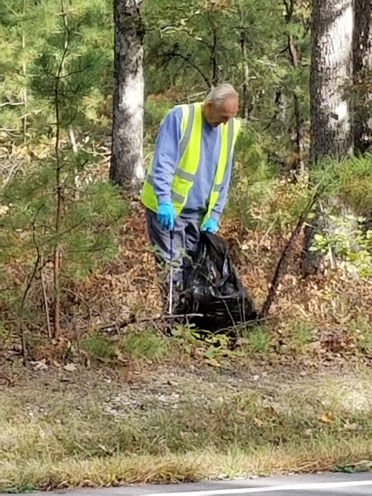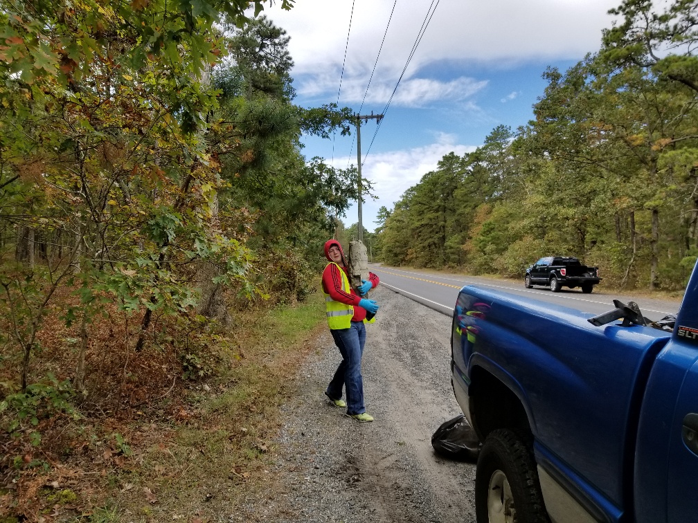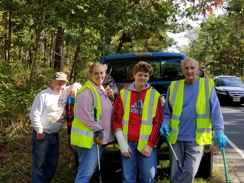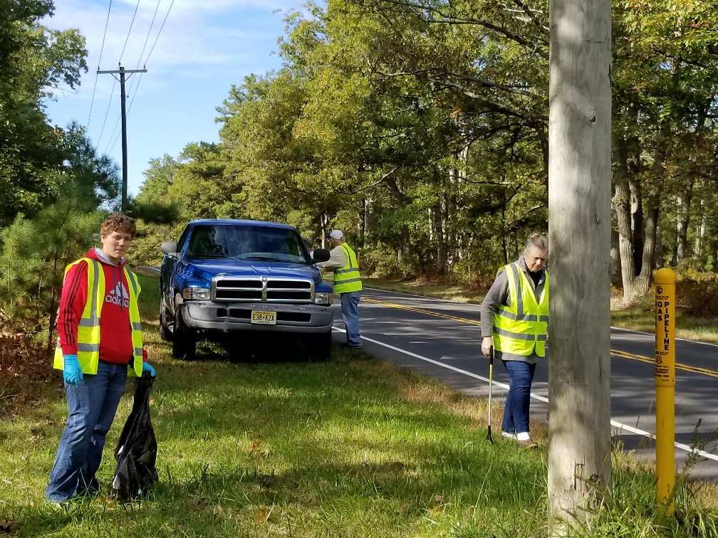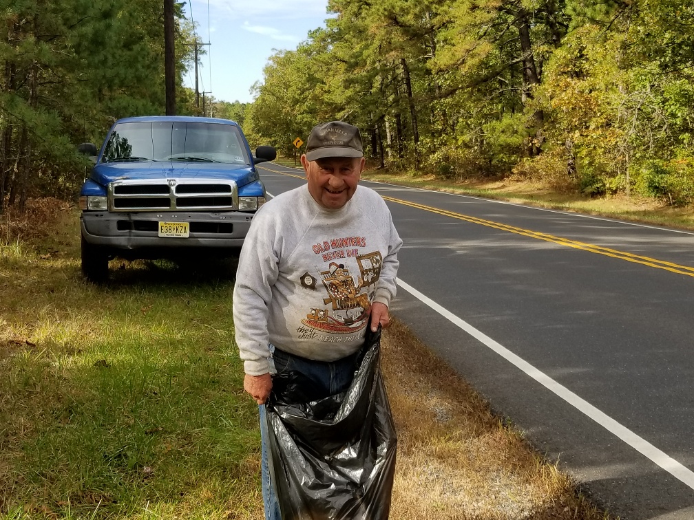 Once again a group from Indian Mills Historical Society ventured into Wharton Forest to help keep our environment clean and “give-back” to the community that we all love so much. It is amazing how much trash one small section of road can generate in just 6 months! About 10 members gathered bright an early at the Shamong Municiple Building before spreading out down the section of Jackson Road between Atsion Road and the boarder of Atco. We managed to fill over 20 large trash bags with an assortment of cans, plastic bottle, paper cups and assorted refuse–plus a tire and some concrete blocks. Hopefully, our little section of road will stay clean for the next few months.